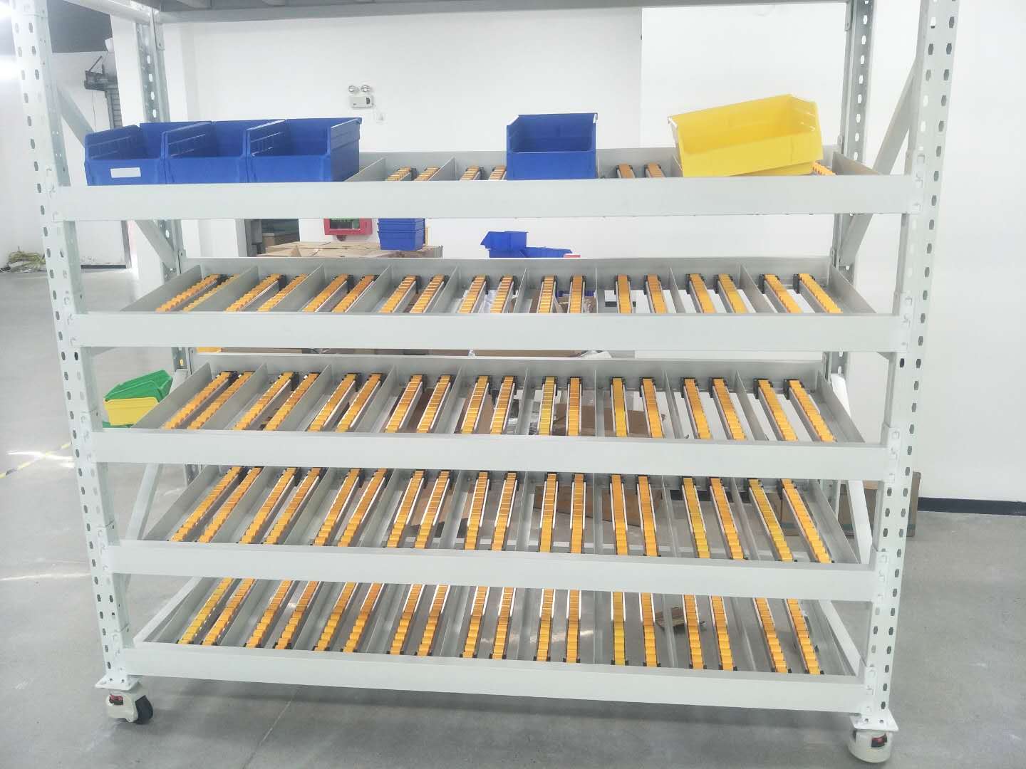 流利式貨架廣泛應(yīng)用于制造業(yè),商業(yè),配送中心,裝配車間以及出貨頻率較高的倉(cāng)庫(kù)流利式貨架,采用滾輪鋁合金,鈑金等流利條,利用臺(tái)架自重實(shí)現(xiàn)先進(jìn)先出,存儲(chǔ)方便,適用于裝配線兩側(cè)配送中心等場(chǎng)所.